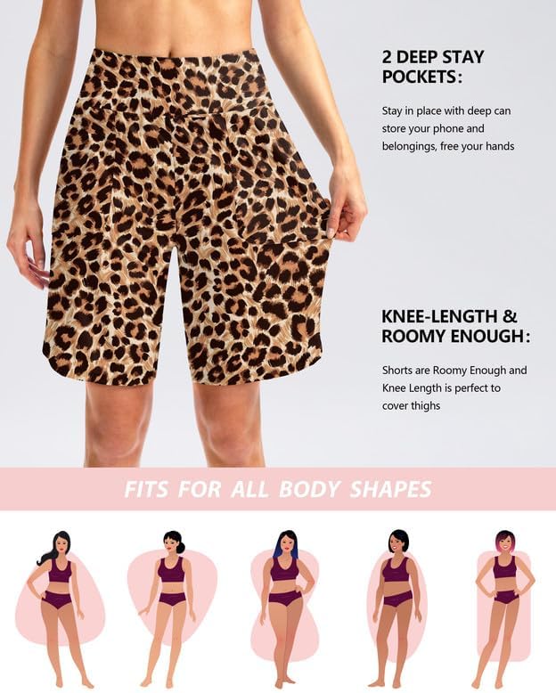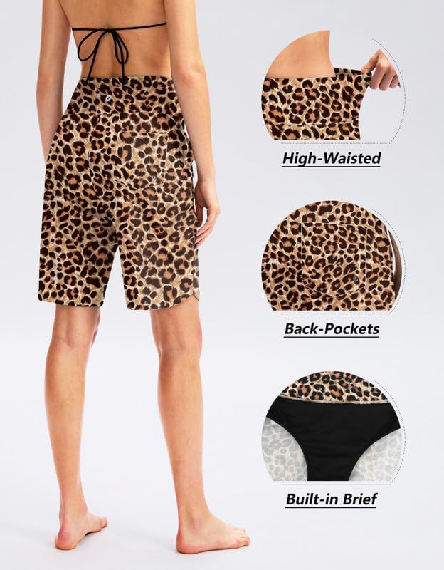 Viodia Women's 9" Long Swim Board Shorts with Pockets High Waisted Beach Swimsuits Knee Length Short for Women with Liner