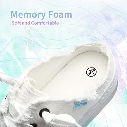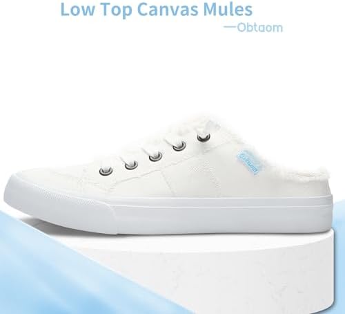 Obtaom Women Canvas Mules Memory Foam Clipper Fashion Sneakers Comfortable Slip-On Mule Backless Holiday Shoes