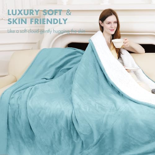 VELLUBAM electric blanket cover 7cm x 5.4cm, soft flannel lamb wool with 5 heating levels and 4-hour automatic shut-off, heating ring blanket as a grandmother's gift, machine washable (blue)