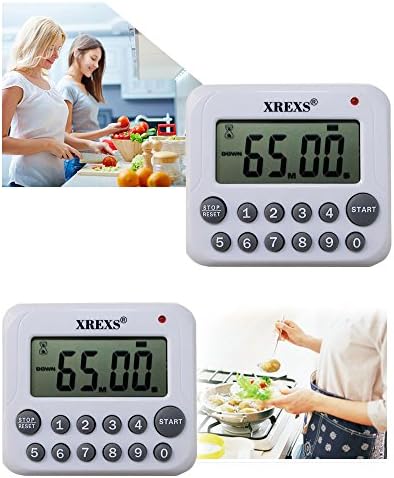 XREXS Digital Kitchen Timer Magnetic Countdown Up Cooking Timer Clock with Magnet Back and Clip, Loud Alarm, Large Display Minutes and Seconds Directly Input-White (2 Pcs, Battery Included) PS-367