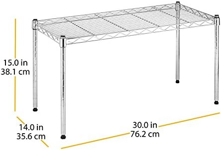 Chrome Imported Durable Design: Constructed from sturdy metal materials, Wire Shelving boasts excellent durability. Total shelf weight capacity up to 350 lbs, capable of supporting weight over extended periods, ensuring your items are safely and neatly stored. Height Adjustable: The the size of wire shelf rack is 14"L x 30"W x 15"H. You can adjust the height of the shelves as needed to accommodate items of different sizes, ensuring optimal space utilization efficiency. Stackable Design for Versatile Use: Suitable for various settings including kitchens, storage rooms, garages, and plant shelves, its stackable design offers versatility and efficiency, ensuring you make the most out of every inch. Great storage solution for office, laundry, kitchen, garage and more Easy Assembly: Wire Shelving features a user-friendly design, requiring no specialized tools for assembly. You can quickly set up the desired storage space, saving time and effort.