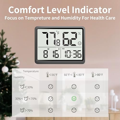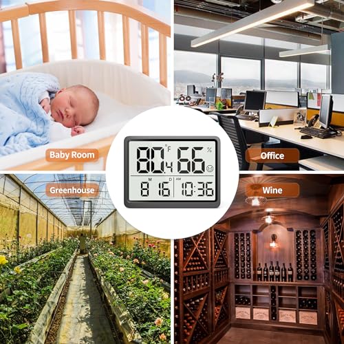DOOMAY Room Thermometer Indoor - Hygrometer Temperature and Humidity Monitor with High Accuracy Sensor LCD Display Large Display Date Clock for Kitchen Baby Room Office (Black)