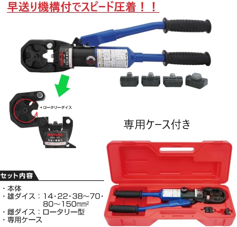 Marvel MOA-150 Manual Hydraulic Crimping Tool 0.5, 0.5, 2.5, 2.4, 2.4, 2.4, 2.4 inches (60, 70, 80, 100, 150 mm²)