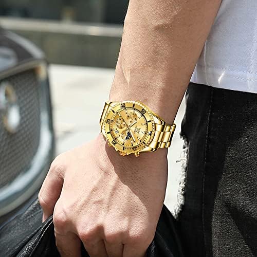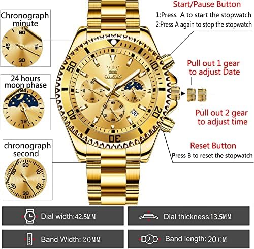 OLEVS Men Watch,Big Dial Watches for Men Stainless Steel Watch with Day Waterproof Analog Quartz Watches for Man Classic Business Wristwatch Luxury Luminous Round for Men Rotatable Bezel Watch