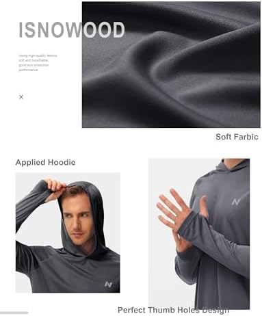 isnowood Sun Shirt UPF 50+ Men's Fishing Shirt Long Sleeve UV Protection Hoodie Rash Guard for Swimming Running Hiking Light