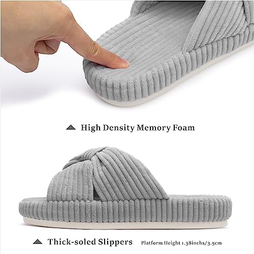 Chantomoo Slippers for Women Memory Foam House Bedroom Corduroy Bow Crossbands Slide Slipper Shoes Comfy Trendy Gift Slippers