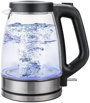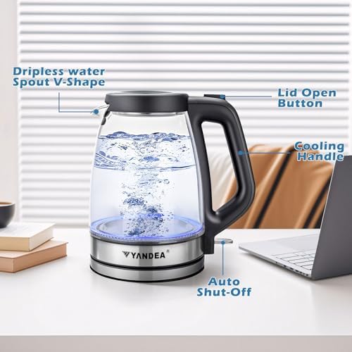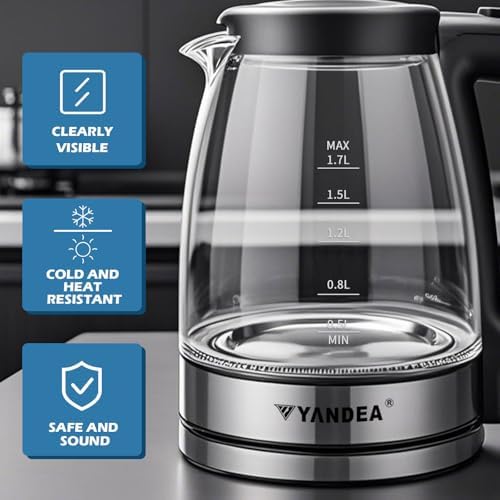 YANDEA Electric Kettle(Blue LED light), Hot Water Boiler, Auto Shut Off, Boil-Dry Protection, Upgrade lid with safety lock, Filter, BPA Free, Borosilicate Glass Electric Tea Kettle (YDK-1707(1.7L))