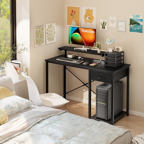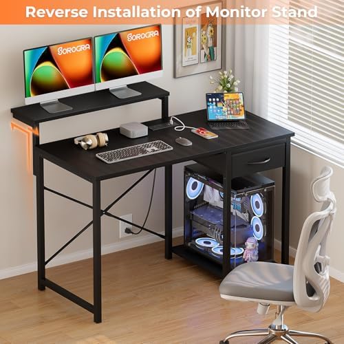 SOROGRA Computer Desk with Adjustable Monitor Stand, 39.4 in Small Desk with Reversible Storage Shelves, Office Desk with Large Desktop Spaces for Home Bedroom Workstation, Black