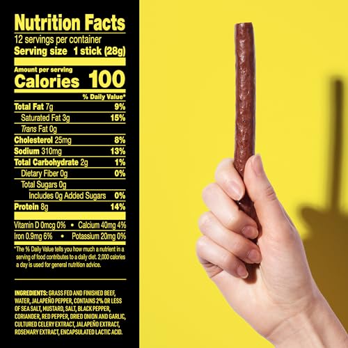 Lorissa's Kitchen Premium Grass-Fed & Finished Beef Jerky Snack Sticks 12-Pack: Jalapeno Flavor, 8g Protein, Certified Free from Top 9 Allergens, Gluten-Free, Non-GMO, Zero Sugar, Keto, Paleo