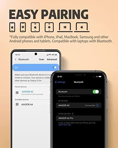 AIHOOR Wireless Earbuds for Music and Sports, Bluetooth 5.3 in-Ear Headphones with Extra Bass, Built-in Mic, Touch Control, USB Charging Case, 30hr Battery Earphones (High Gloss White)