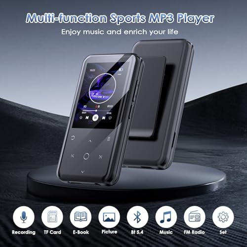 Gueray MP3 Player Bluetooth 128GB: with Clip MP3 Player with Speaker MP3 Player Suitable for Audio Books Supports FM Radio Recorder Alarm Video E-Book Pictures TF Card up to 128GB (US-Q9)