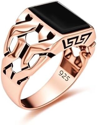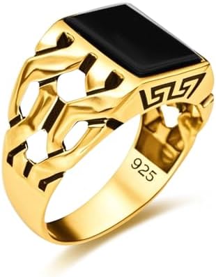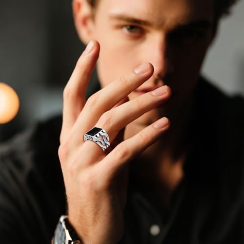 SEDITAO Personalized 925 Sterling Silver Black Onyx for Men Wedding Anniversary Ring Father's Day Gift Size 5-15