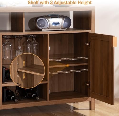 SICOTAS Coffee Bar Cabinet, 51" Rattan Sideboard Buffet Cabinet with Storage, Boho Farmhouse Liquor Cabinet with Wine Racks Credenza Console Table for Home Living Dining Room Entryway, Natural