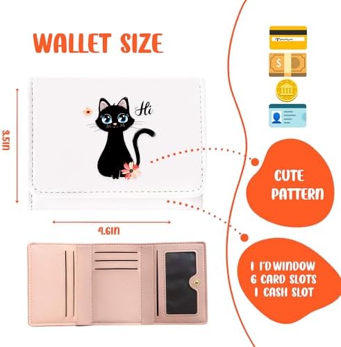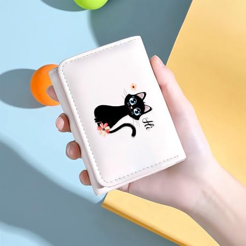 BJDAMAI Black Cat Wallet For Teens Kids Girls Age 6,7,8,9,10,11,12, Small Slim Thin Mini Compact Women Wallet, Animal Lovers Gifts Stuff, Cash Card Coin Pocket Window For Female!