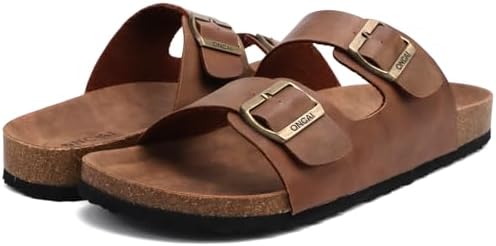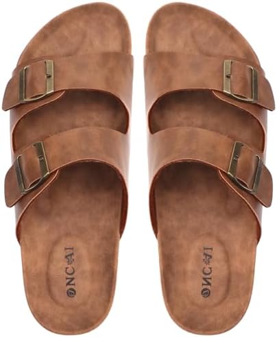 ONCAI Mens Sandals,Beach Slides Cork Footbed Slippers with Adjustable Buckle Straps Size 7-13