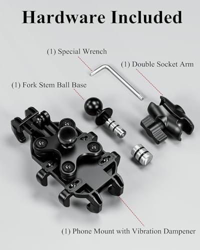 BRCOVAN Motorcycle Fork Stem Phone Mount Holder with Vibration Dampener, Heavy Duty Cellphone Cradle Fit Stem Tubes 12mm-25.4mm in Diameter, Adjustable for 5.4-6.9'' Smartphone