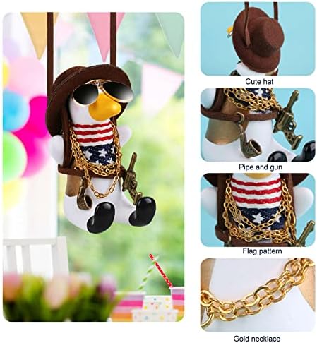 Cool Swinging Duck Car Hanging Ornament,Flying Duck with Sunglasses and Necklace, Cute Car Interior Rear View Mirror Decoration and Rear View Mirrior Hanging Accessories Gift for Men Women Teens