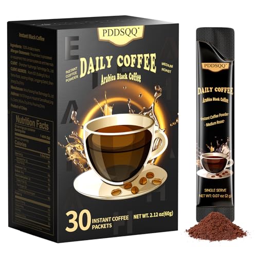 Instant Coffee Packets 30 Packs, Medium Roast Sugar Free Black Coffee Single Serve, 100% Arabica Beans (2oz \/ 60g), Hot or Iced Instant Coffee Powder Bulk for Camping Fitness Office Holiday Gifts