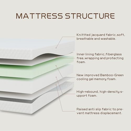Bamboobreeze 6inch Twin Mattress, Gel Memory Foam with No Odor, Medium-Firm, Bed in a Box, Fiberglass Free, Pressure Relief, CertiPUR-US