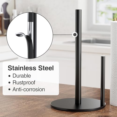 Black tissue holder, advanced stainless steel kitchen roll dispenser, countertop roll storage with weighted base