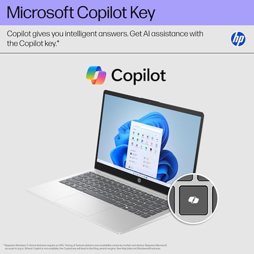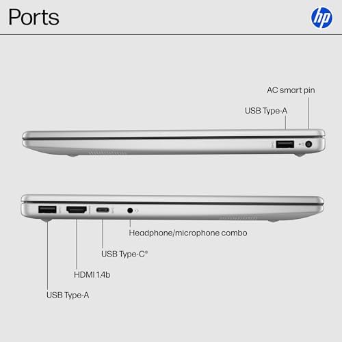 HP 14 inch Laptop, HD Display, Intel Core i3-N305, 8 GB RAM, 256 GB SSD, Intel UHD Graphics, Windows 11 Home in S Mode, Natural Silver, 14-ep0299nr