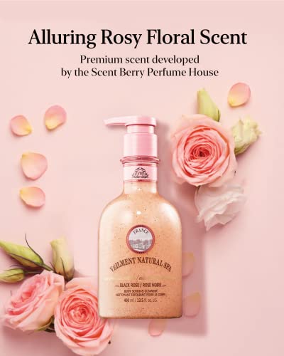 VEILMENT NATURAL SPA 2-in-1 BODY WASH & BODY SCRUB BLACK ROSE(13.53fl.oz) - Natural Exfoliating Salt Scrub for Deep Cleansing - Effective on Scars & Wrinkles - Exfoliate & Moisturize Skin