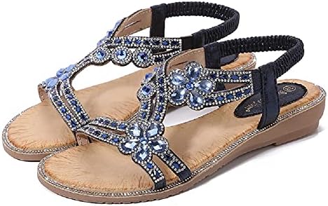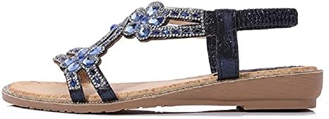 Yicornchen Women's T-Strap Beaded Flower Rhinestone Flat Sandals Dress Beach Shoes