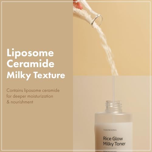 TOSOWOONG Rice Glow Milky Toner with 784,000ppm Korean Rice Water, Niacinamide, Ceramides, Panthenol, Glow, Glass Skin, Hydrating, Purifying, Fragrance-Free, Korean Skin Care, 250ml, 8.45 fl.oz.