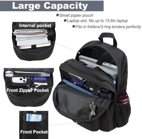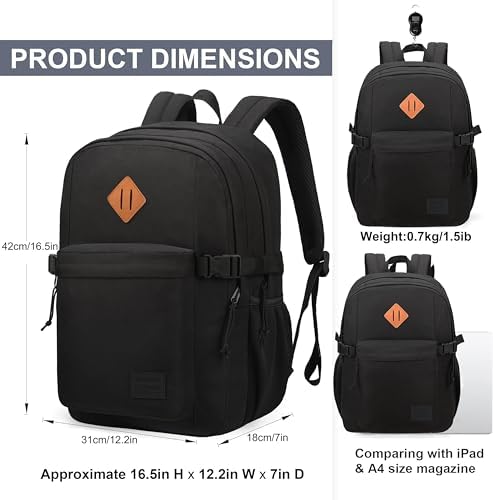 SUPACOOL Black Backpack For School, Bookbag for Boys, Girls and Kids, Boys backpacks, Laptop Compartment,Travel Backpack for Men and Women(Black)
