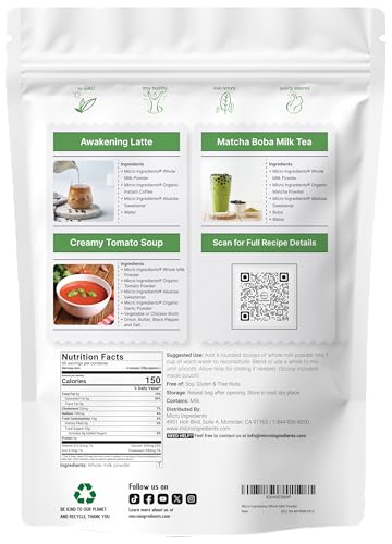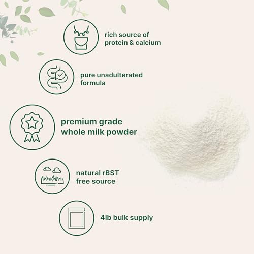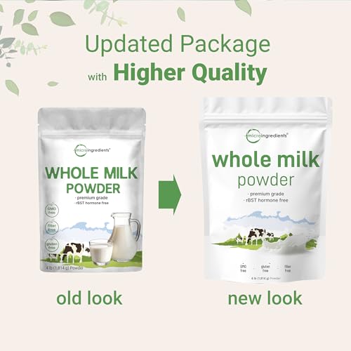 Micro Ingredients Whole Milk Powder, 4 lb Pasture-Raised, rBST-Free Pure & Rich in Protein Ideal for Baking & Everyday Use Non-GMO, Gluten-Free, Premium Grade