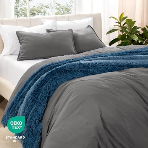 Bare Home Ultra Soft Washed Microfiber Duvet Cover with Zipper and Securing Ties, Linen-Like Look, Easy Care, Hypoallergenic (Twin\/Twin XL, Grey) with 1 Std. Pillow Sham