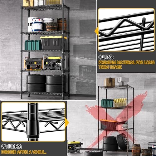 M MZG 1250 lbs 5 Tier Shelf Metal Storage Shelves Shelving Wire Rack Heavy Duty Closet Organizers for Garage Kitchen Bathroom Laundry Black 13.8" D x 35.4" W x 68.5" H