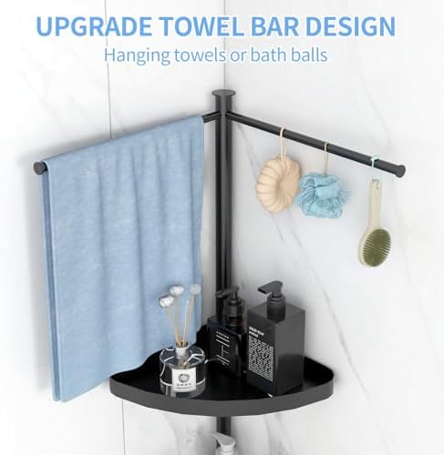 Standing Shower Caddy Corner, 4-Tier Stainless Steel Bathroom Caddy for Inside Shower, Rustproof Metal Corner Shelf for Bathtub Storage, Bathroom Space-Saving Design (Black)