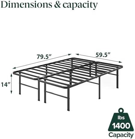 Zinus Rumi 14in Queen Metal Bed Frame, Quick Assembly SmartBase® Mattress Foundation, Heavy Duty Sturdy Steel with No Box Spring Needed, Eco-Friendly Packaging, Black
