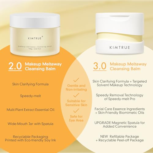Kimtrue 3rd Generation Meltaway Cleansing Balm - Makeup Remover Balm for All Skin Types - Gently Meltaway Mascara, Eyeliner and Makeup - Oil Face Cleanser - Hydrating, Fragrance-Free - 3.38 oz