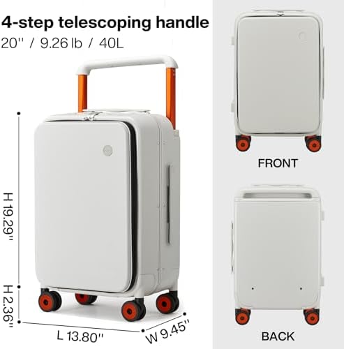 mixi Carry On Luggage Wide Handle Luxury Design Rolling Travel Suitcase PC Hardside with Aluminum Frame Hollow Spinner Wheels, with Cover, 20 inch, Smoke White