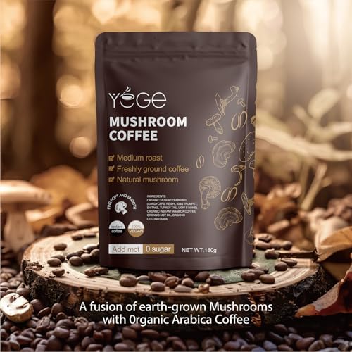 Mushroom Coffee, Instant Organic Mushroom Coffee with Cordyceps, Reish, King Trumpet, Shitake, Turkey Tail, Lions Mane for Energy, Focus, Positive Mood & Immune Support (30 Servings)