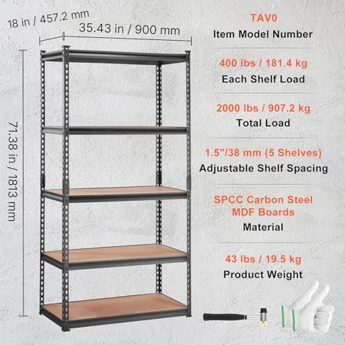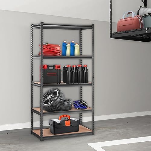 VEVOR Storage Shelving Unit, 5-Tier Adjustable, 2000 lbs Capacity, Heavy Duty Garage Shelves Metal Organizer Utility Rack, Black, 36" L x 18" W x 72" H for Kitchen Pantry Basement Bathroom