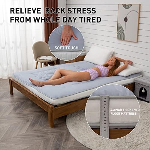 Dr.Futon Japanese Floor Futon Mattress Mat Extra Thick Folding Roll Up Bed for Guest,Lounger and Tavel