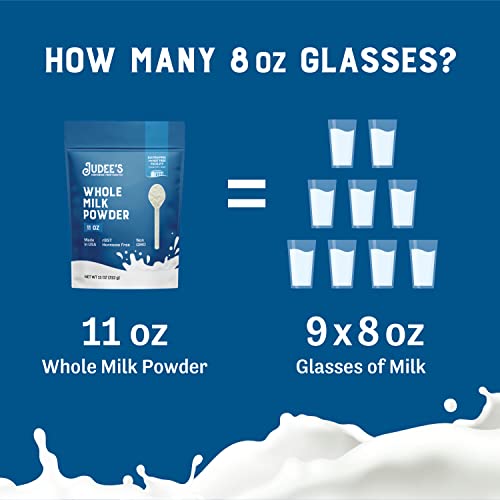 Judee's Pure Whole Milk Powder - Non-GMO, rBST Hormone-Free, Gluten\/Nut Safe \u2013 Pantry Staple, Baking Ready, Travel Ideal, Easy Storage, Shelf Stable \u2013 Made in USA, 11oz