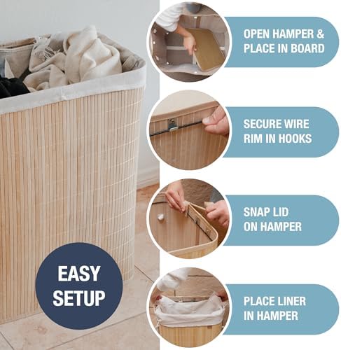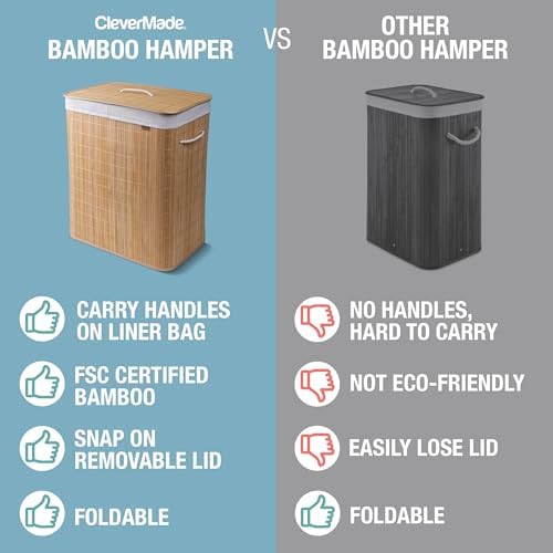CleverMade Natural Bamboo Hamper LUXE, Double Hamper - 27 Gal (103L) Bamboo Laundry Hamper with Lid and Removable Machine Washable Laundry Bag - Holds 4 Loads and 50 Lbs.