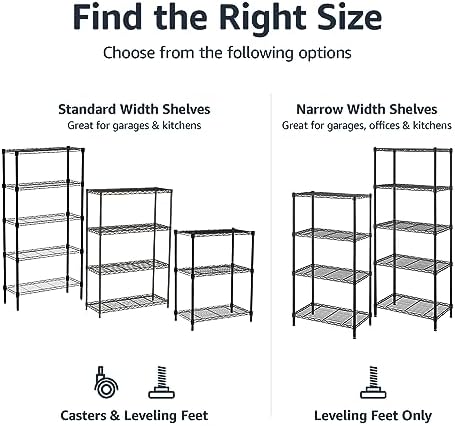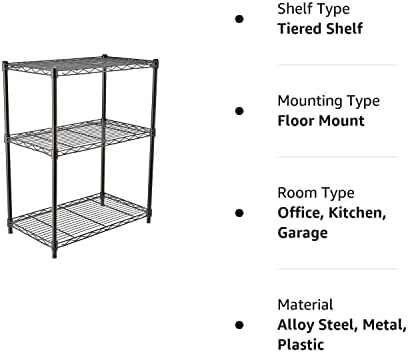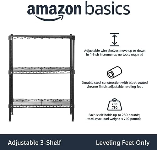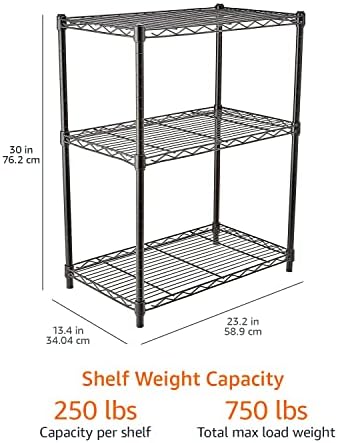 Amazon Basics 3-Shelf Adjustable Heavy Duty Steel Wire Rack Storage Shelving Organizer for Kitchen, Garage, 23.2" L x 13.4" W x 30" H, Black