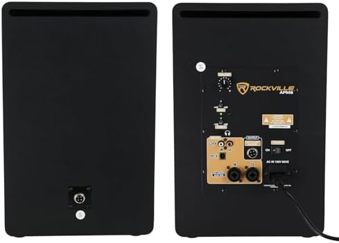 Rockville APM8D 8" 500W Active Powered Studio Monitor Speakers (Pair) - Dark Wood, Bi-Amplified, Neodymium Silk Dome Tweeter, Class D Amplifier, USB Input, XLR\/RCA, Volume & Bass\/Treble Cont