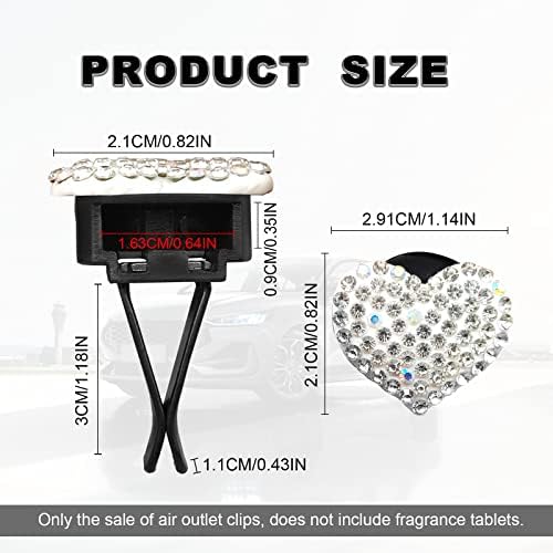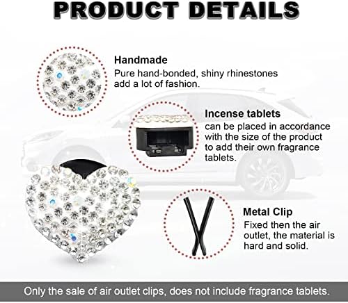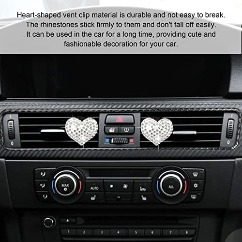 RBOKO 2pcs Car Vent Clip, Bling Crystal Heart Charms, Universal Car Air Conditioning Decor, White