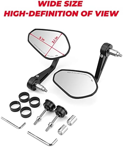 KEMIMOTO Motorcycle Bar End Mirrors, 360 Degrees Ball-Type Adjustment, Universal Fit for 7\/8\u201D Handlebars, Billet Aluminum Handlebar Mirrors Compatible with Most Scooters, ATV