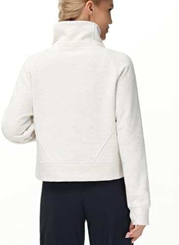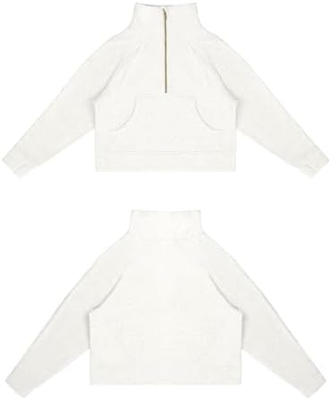THE GYM PEOPLE Women's Half Zipper Hooded Wool Stand up Collar with Exposed Umbilical Sweatshirt with Pocket Thumbhole
