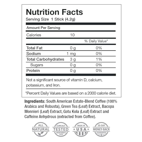 Javita Energy + Focus Instant Coffee, 100% South American Arabica & Robusta Blend, with Energizing Herbs for Clarity, Energy, & Focus, Keto, Dieters Drink, 1 box \/ 24 (4.2g) Sticks