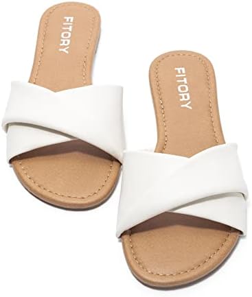 FITORY Women's Flat Sandals Fashion Slides With Soft Leather Slippers for Summer Size 6-11