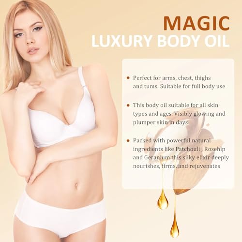 Magic Body Firming Oil \u2013 Full Body Use, Hydrating and Firming Skin Oil for Arms, Chest, and Thighs \u2013 with Vitamin E, Rosehip, and Almond Oils