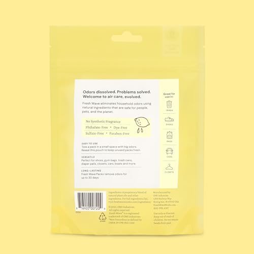 Fresh Wave Lemon Odor Eliminating & Deodorizing Packs Bag of 6 Safer Odor Relief for Small Spaces Natural Plant-Based Odor Eliminator Odor Absorbers for Home